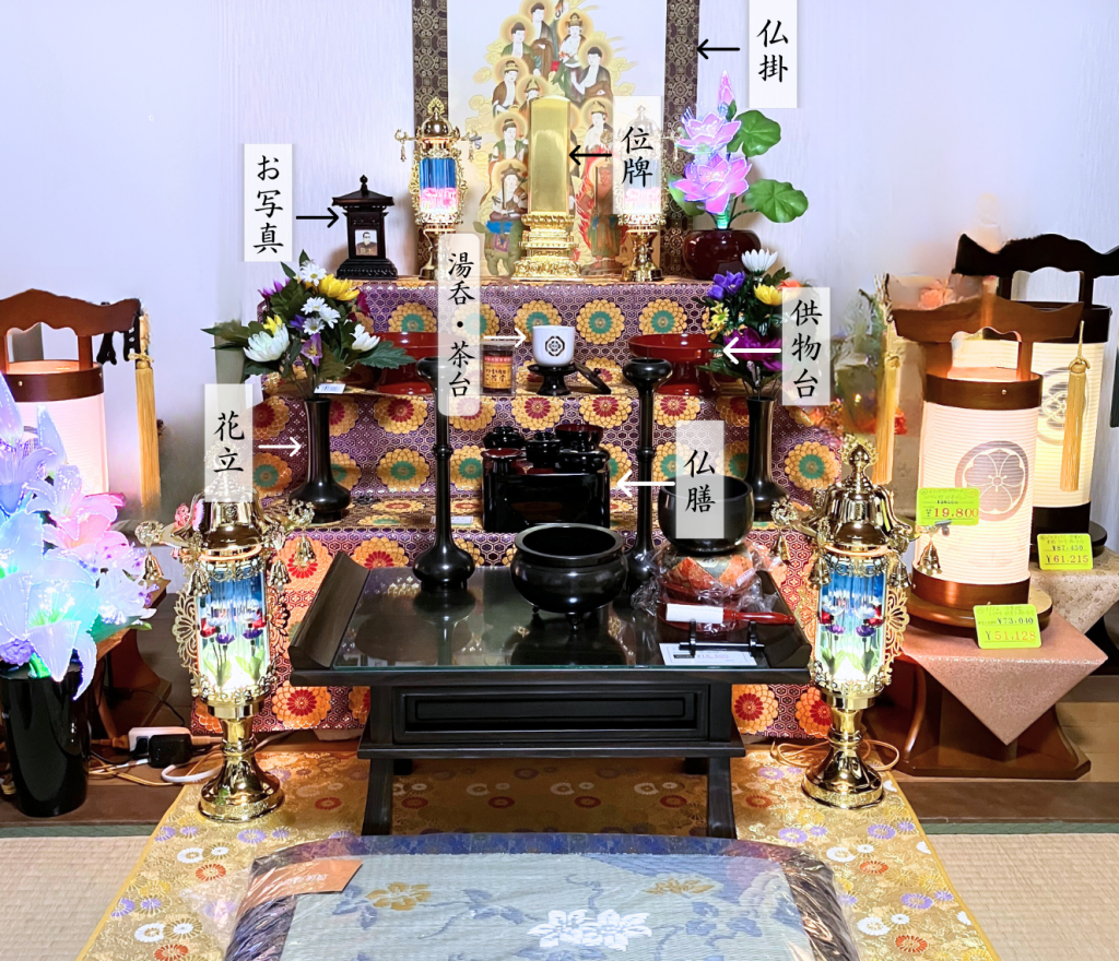 ※祭壇飾りは地方によっても異なりますし、宗派やお寺によって微妙に異なる事がありますので、あくまで参考程度ですが…
